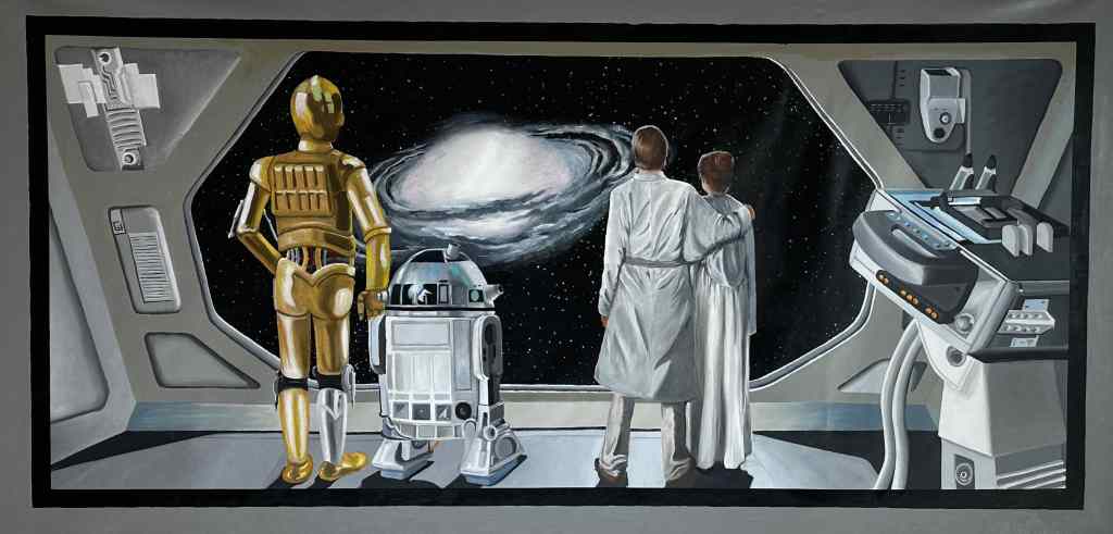 Cindy and I have just completed our work on this 3’1”x7’ oil on canvas fan-art painting. Bidding begins at $1,500 and includes precut hidden mount system with all the nuts and bolts (assembly instructions included) shipping is extra.